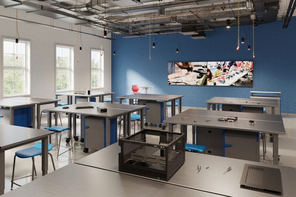 While there’s some crossover in how these spaces are furnished, and all modern learning environments require furniture that supports active engagement, CTE and STEM labs place a unique and intensified set of demands on every surface, seat, and storage unit. In these spaces, furniture becomes an integral part of the hands-on work itself, requiring an exceptional level of flexibility, durability, and safety to be effective.